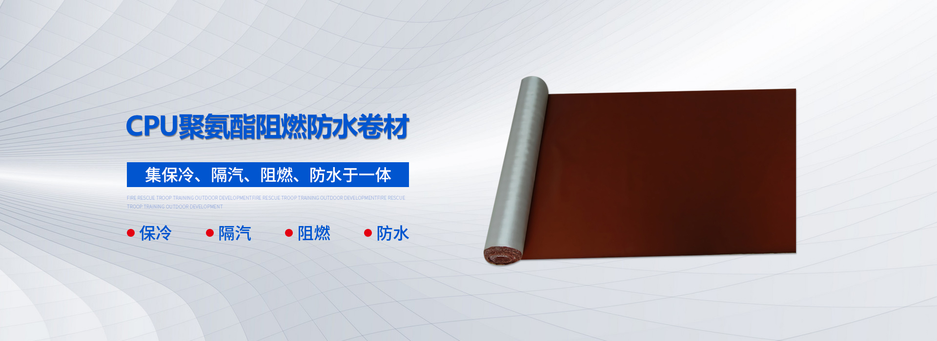 CPU系列彈性卷材以聚氨酯阻燃膠為主要原料,基層采用科學配方經(jīng)技術(shù)處理的增強布作胎基,在特殊的機械加工設(shè)備上復合CPU混合料,經(jīng)硫化、整理卷取等工序制成的高分子阻燃防水卷材。該產(chǎn)品及保冷、隔汽、阻燃、防水于一體,使用壽命長,其阻燃性能處于國內(nèi)領(lǐng)先水平,填補了國內(nèi)聚氨酯阻燃防水卷材的空白。